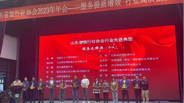 會(huì)上,對榮獲2023年度山東省旅行社行業(yè)先進(jìn)典型的107家單位和個(gè)人予以表彰,對山東省“沿著黃河遇見海”旅游線路產(chǎn)品設(shè)計(jì)大賽獲獎(jiǎng)?wù)哂枰宰C書和現(xiàn)金獎(jiǎng)勵(lì)。