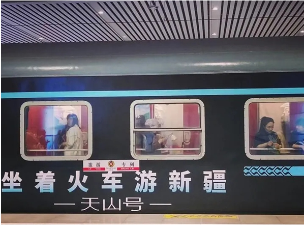 這是“坐著火車游新疆·天山號(hào)”旅游專列