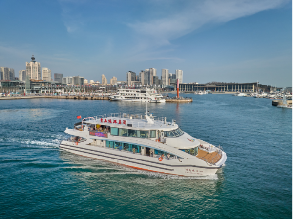 隨著海洋旅游的蓬勃發展,青島旅游集團新增了潮齊音樂會專線、極速兜風快艇、棧橋經典環游、海上巴士1號線等9條海洋旅游線路,巧妙地將青島沿海的各個知名景點串聯起來,游客可一站式體驗“海上觀青島”,在游船上將“紅瓦綠樹、碧海藍天”的城市景色盡收眼底。