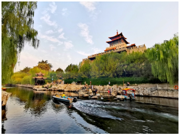 解放閣位于濟南市歷下區(qū)黑虎泉路東首,省級文物保護單位。閣高24.1米,連臺基通高34.1米,占地1637.2平方米,建筑面積617.2平方米。臺基東側(cè)貼壁立有“解放濟南戰(zhàn)役革命烈士紀念碑”,鐫刻著在濟南戰(zhàn)役中壯烈犧牲的3764位烈士的英名。