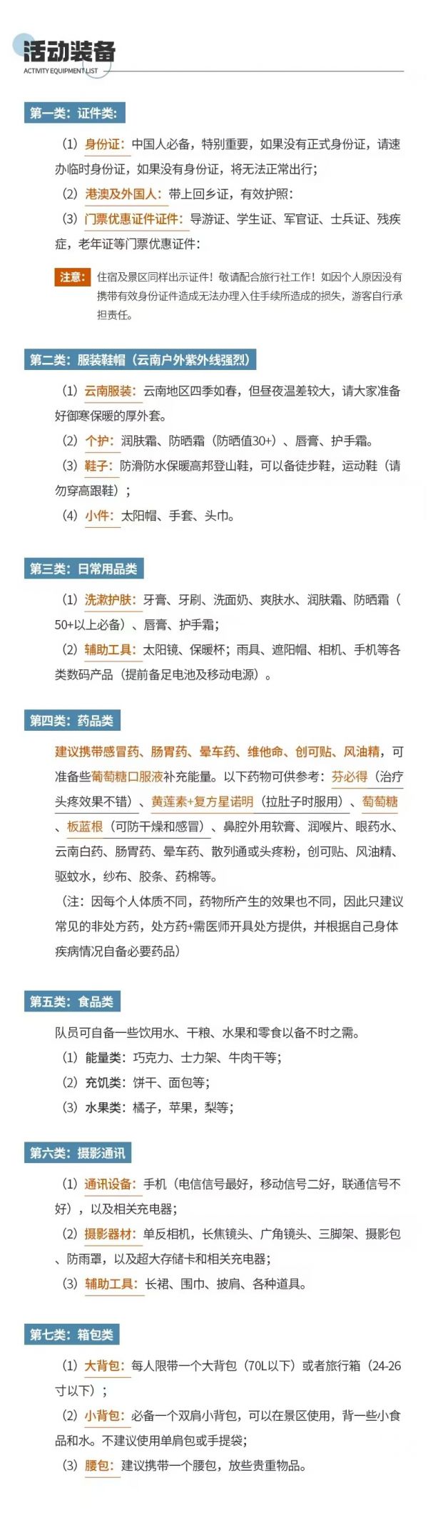 3. 建議隊(duì)員們?cè)诩先盏诌_(dá)昆明后,可在市區(qū)采購一些旅行用品,如零食、佐餐小菜、藥品等;