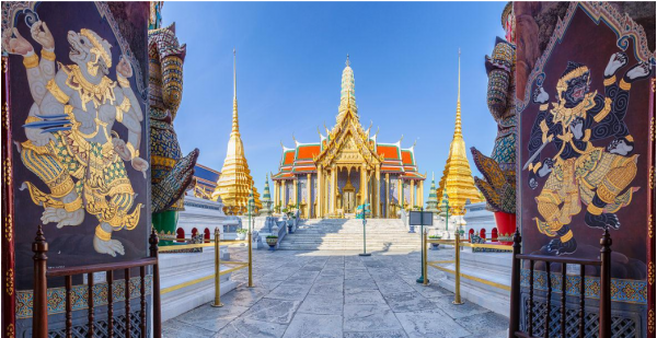 【大皇宮+玉佛寺】(皇宮+玉佛寺不少于 1.5 小時),又稱大王宮,是泰國(暹羅)王室的皇宮。緊鄰湄南河,是曼谷中心內(nèi)一處大規(guī)模古建筑群(計 28 座),總面 積 218400 平方米。大皇宮始建于 1782 年,經(jīng)歷代國王的不斷修繕擴(kuò)建,終建成現(xiàn) 在這規(guī)模宏大的大皇宮建筑群,至今仍金碧輝煌。大皇宮是仿照故都大城的舊皇宮 建造的,大皇宮是泰國諸多王宮之一,是歷代王宮保存最完美、規(guī)模最大、最有民 族特色的王宮。玉佛寺位于曼谷大王宮的東北角,是泰國最著名的佛寺,也是泰國三大國寶之一。玉佛寺是泰國佛教最神圣的地方,是查庫里王朝的守護(hù)寺和護(hù)國寺,建于 1782 年的玉佛寺是泰國大王宮的一部分,面積約占大王宮的 1/4。玉佛寺是泰國王族供奉玉佛像和舉行宗教儀式的場所,因寺內(nèi)供奉著玉佛而得名。