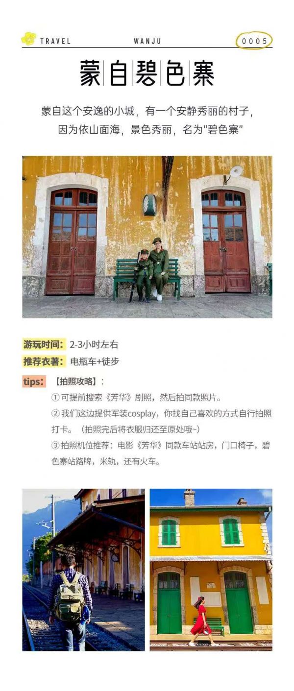 特色亮點:體驗蒙自碧色寨cosplay服裝一套;旅行三寶+戶外頭巾+隨車配備礦泉水;