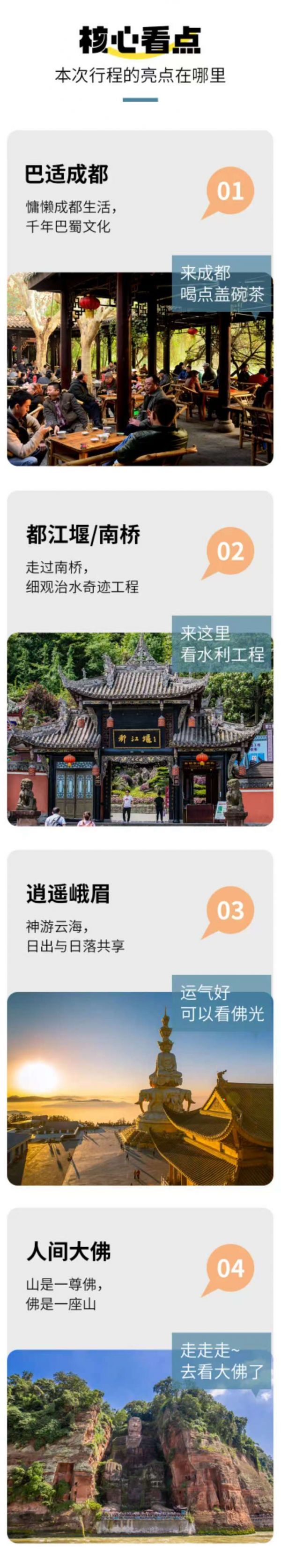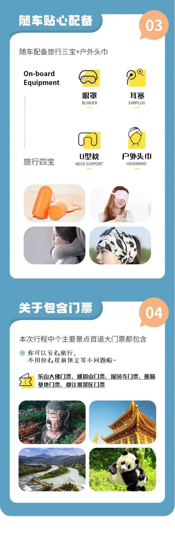 門票:樂山大佛門票、峨眉山門票、報國寺門票、熊貓基地景區門票、都江堰景區門票