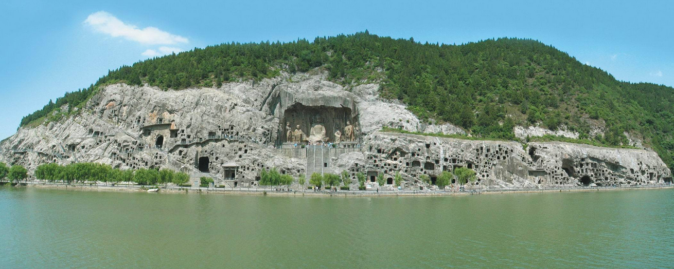 龍門石窟位于河南省洛陽市洛龍區伊河兩岸的龍門山與香山上,開鑿于北魏孝文帝年間,之后歷經東魏、西魏、北齊、隋、唐、五代、宋等朝代連續大規模營造達400余年之久,南北長達1公里,今存有窟龕2345個,造像10萬余尊,碑刻題記2800余品。其中“龍門二十品”是書法魏碑精華,褚遂良所書的“伊闕佛龕之碑”則是初唐楷書藝術的典范。