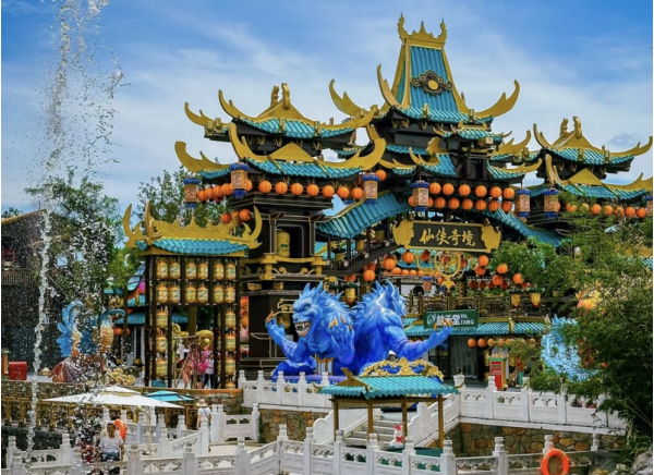 萬(wàn)歲山武俠城,坐落于河南省開(kāi)封市龍亭區(qū)東京大道中段,處于開(kāi)封城西北部,與龍亭湖風(fēng)景區(qū)相鄰。這里原是北宋時(shí)期的皇家園林,由宋徽宗趙佶親自設(shè)計(jì)并指導(dǎo)修建,始建于北宋政和七年(1117年) ,歷時(shí)6年落成,當(dāng)時(shí)名為艮岳、壽山、陽(yáng)華宮 ,將自然山水美與人工相結(jié)合,融合了古代南方和北方園林建筑的特色,被贊“并包羅列,又兼勝絕”。靖康之恥時(shí),它毀于戰(zhàn)亂。
