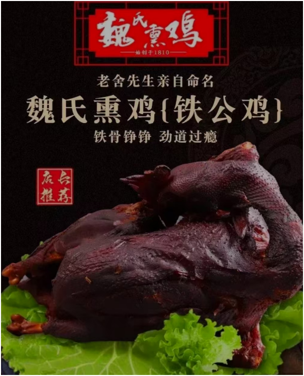 自此,魏氏熏雞代代相傳,歷經(jīng)七代傳人,已有200多年的歷史。魏氏熏雞歷經(jīng)七代傳承,不斷豐富和發(fā)展了餐飲文化,成為魯菜中的代表。其先后被評(píng)為1991年廣州商品交易會(huì)最佳地方名吃、1997年中國(guó)山東旅游博覽會(huì)優(yōu)秀旅游商品、2002年中國(guó)江北水城(聊城)文化旅游節(jié)指定產(chǎn)品等。2009年,魏氏熏雞被列入第二批山東省非物質(zhì)文化遺產(chǎn)名錄。此外,魏氏熏雞還曾被老舍等著名作家品嘗并贊譽(yù),被譽(yù)為“聊城鐵公雞”。