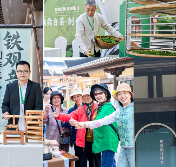 漫步在長興唐潮十二坊,“茶通百藝·游購四方”非遺市集以“神農啟茶”“陸羽問茶”“江南絲府”等六大主題板塊形成一條沉浸式文化體驗線路。游客們沿著精心設計的游覽路線,在茶香氤氳中感受非遺的活態傳承。