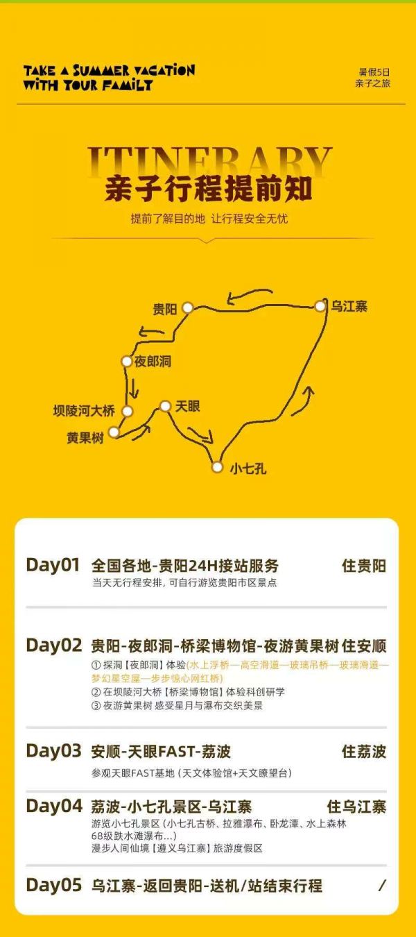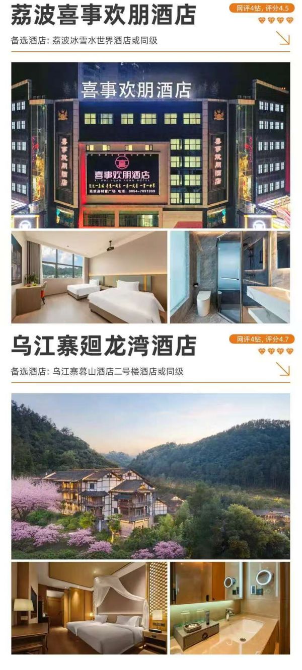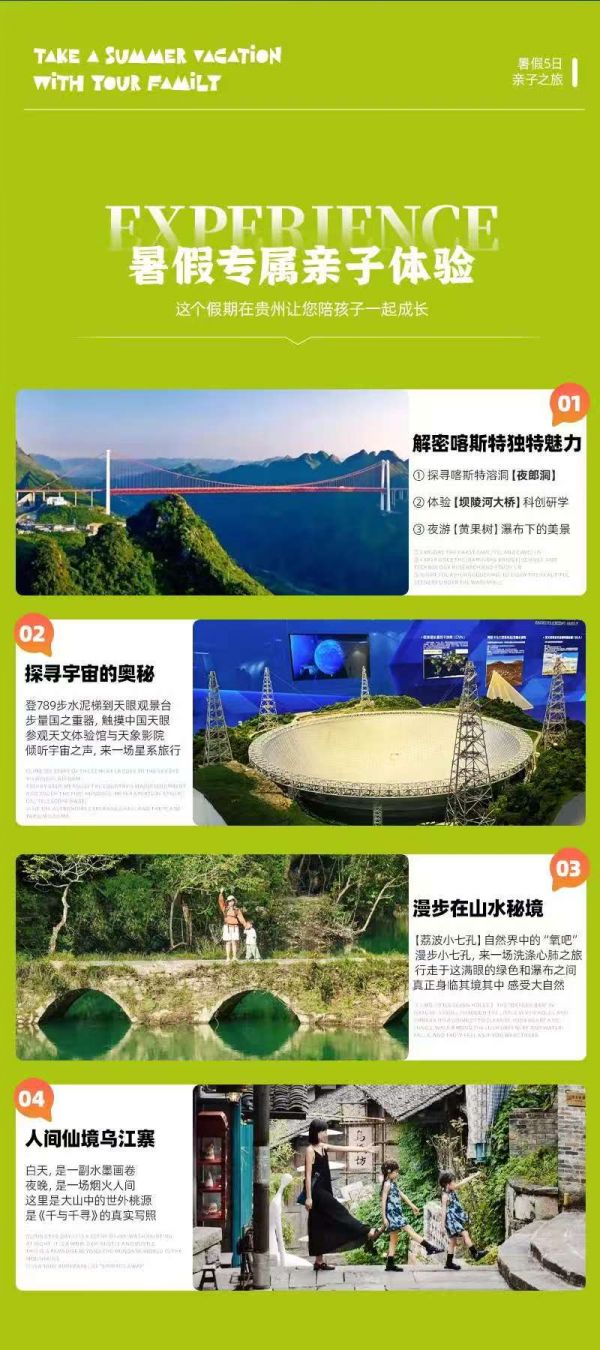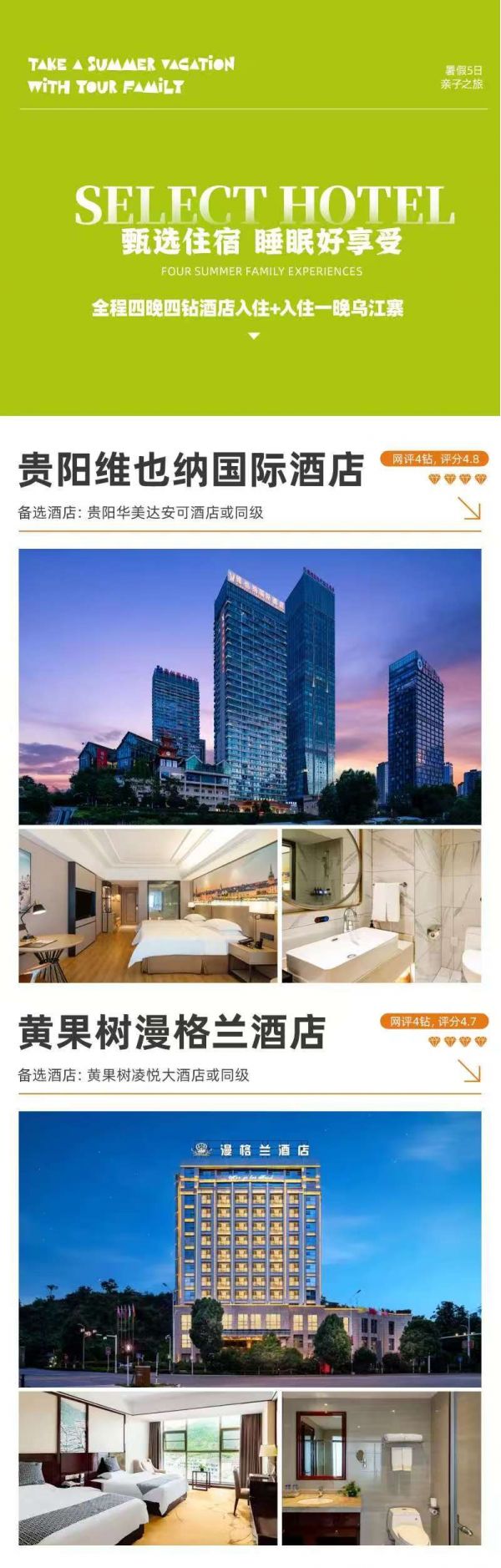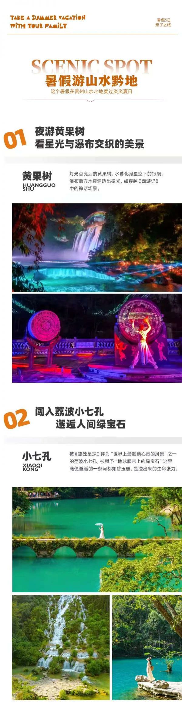 2.兒童不含(1.4米以下包含1.4米):酒店床位,夜游黃果樹大瀑布+陡坡塘夜游套票75;黃果樹景區(qū)擺渡車50;大瀑布往返扶梯50;小七孔門票120;小七孔電瓶車50;天眼基礎(chǔ)套票60;天眼電瓶車50;如產(chǎn)生景區(qū)項目消費按實際收費標準自理。