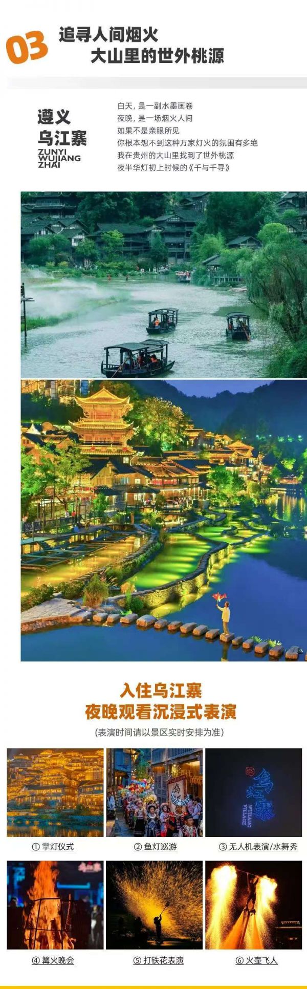 入住烏江寨。沉浸式表演之夜(以景區(qū)實時安排為準):
