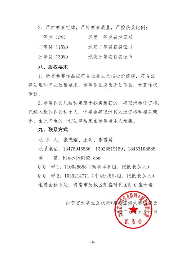 山東省大學生互聯網+康養旅游大賽組委會文件
