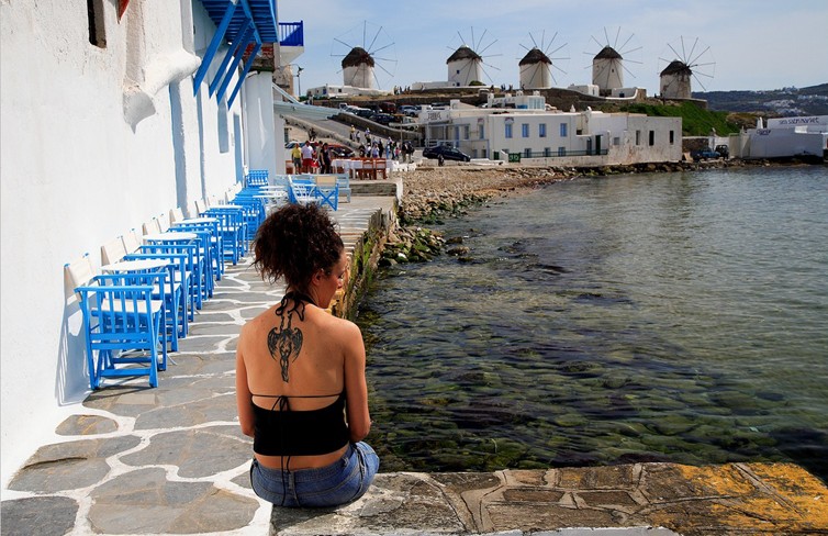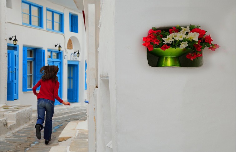 喜歡在小島上漫步,因為腳步特別愉快。Mykonos的小鎮不是很大,但有很多美麗陋巷,每戶住宅外的繽紛梯子散發著地中海的風情,每個轉角都是驚喜,每個角落都是鏡頭焦點。走著走著,你會不自覺將手中的地圖收起,不介意隨時迷路,然后你會發現有時在人生的旅途上,沒有計劃的路程才會有意料不到的精彩。