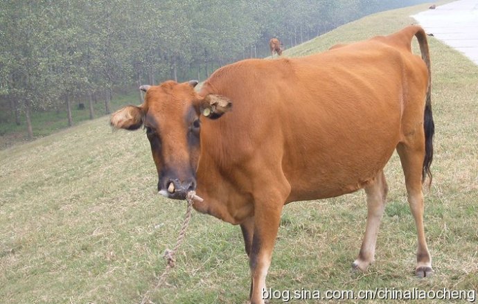 魯西黃牛,產(chǎn)于魯西平原,聊城飼養(yǎng)較多,是我國有名的役肉兼用牛種之一,在國際市場上享有盛譽(yù)。這種牛體驅(qū)高大,結(jié)構(gòu)緊湊,肌肉發(fā)達(dá),前身較寬厚,背腰寬平,毛色由棕紅到淺黃不一以黃色居多。多數(shù)牛具有完全或不完全的“三粉”特征。即眼圈、口輪、腹下及四肢內(nèi)側(cè)為粉色。通常人們依據(jù)它們體型上結(jié)構(gòu)的差異,分為高轅牛(大型)和抓地虎(小型)以及中間型三種類型。高轅牛體驅(qū)高大,四肢開闊,側(cè)望之近似正方形,行走迅速,步幅較大,適宜挽車運(yùn)輸。抓地虎個體較矮。身驅(qū)較長,四肢粗壯,側(cè)望之近似長方形,步幅較小,速度較慢,但挽力和持久力較大,適于農(nóng)田耕作。中間型牛兼有兩者的特征。