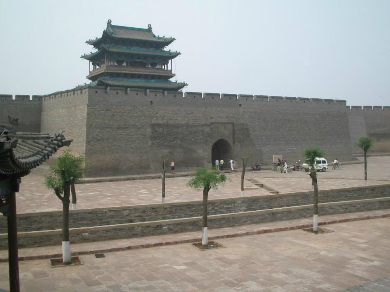 即平遙縣城墻。明洪武三年(1370年)建,周長(zhǎng)6.4公里,是山西現(xiàn)存歷史較早、規(guī)模最大的一座城城墻。明、清兩代都有補(bǔ)修,但基本上還是明初的形制和構(gòu)造。城為方形,墻高12米左右,外表全部磚砌,墻上筑的垛口,墻外有護(hù)城河,深廣各4米。城周辟門(mén)六道,東西各二,南北各一。東西詐外又筑以甕城,以利防守。有3000個(gè)垛口、72座敵樓,據(jù)說(shuō)象征孔子三千弟子及七十二圣人。。城墻歷經(jīng)了600余年的風(fēng)雨滄桑,至今仍雄風(fēng)猶存。