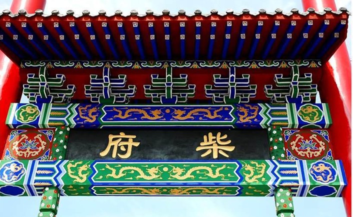 其三,柴府建筑即有極富裝飾性的房頂,又配以豐富多彩的色彩。主要建筑屋頂裝飾有十字形、丁字形兩種,其結(jié)構(gòu)以“懸山頂”為主。兩邊的建筑結(jié)構(gòu)則為“硬山頂”。建筑物上涂漆及彩畫多用紅、綠、黃、藍(lán)色,即使在冬季也有生機(jī)之感。