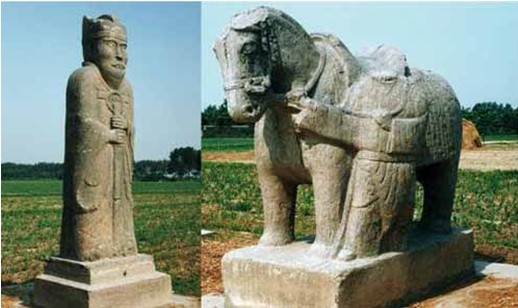 韓氏墓地石刻群 古代石刻群。位于莘縣董杜莊鄉梁丕營村東北。系唐末魏博節度使韓允中及其父韓國昌墓葬神道石刻群。墓葬坐北朝南,地表封土已平。石刻存有韓允中墓碑、韓國昌神道碑、墓表、豕、羊、馬、武士俑。韓允中墓碑和韓國昌神道碑形制大小基本相司。碑身與碑額為整石雕出,通高6.8米、寬2.13米、厚0.77米。額上浮雕6條龍,曲折盤繞,層次分明,龍首飾在碑首側,碑首正中留有圭字形額。碑文多有殘缺,可辯者有2500余字,書體工整秀勁,波折險峻,有褚體韻致。墓表,位于神道碑的最南端,八棱形,通高3.49米,表首圓形,飾仰蓮,座方形。八棱柱體上刻有宋紹圣二年的簡短文字,記敘了宋代補添神道石刻的經過。石豕,首殘,殘高1.12米。肌肉雄健,四足有力,蹲坐于方形基座上,隱露出勇猛不可侵犯的樣子。石羊,高0.92米,俯臥在長方形基座上,雙角大而彎曲,安詳地注視前方。石馬,首尾長2.36米,高1.60米,著鞍轡,雕琢渾樸。馬左前雕出一胡服束帶牽馬石俑,頭部已殘,高1.40米,形象威嚴,版權所有山東聊城聊之旅國際旅行社有限公司,轉載必究!神態逼真。武士俑,頭戴冠,雙手持劍站立在方形臺基上,高2.73米,短頸,雙目圓睜,威武莊嚴。韓氏先世為河南汝南人,世為魏將,國昌官至貝州刺史,唐大中六年(852)卒。允中官至魏博節度使,乾符元年(874)卒。父子俱為顯官,故神道石刻之高大雄偉有異于常。1992年6月被山東省政府列為省級重點文物保護單位。