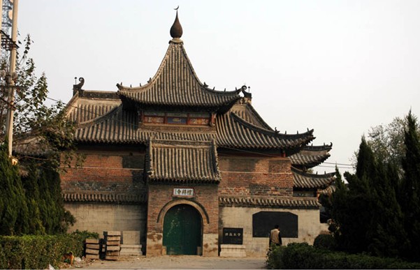 清真寺坐落于臨清市衛河東岸、先鋒橋畔,俗稱北禮拜寺,是一座保存較為完整的古代建筑群。現存更樓、 月臺、正殿、傳屏、北講堂等大小房屋80余間。正殿前半部為四阿廡殿頂,正脊兩裝有鴟尾, 后部為重檐,結頂呈山字形。中為八角攢尖頂,后出抱廈,兩側各掩一四角攢尖頂。坡度比較大, 森然聳峙,錯落有致。版權所有山東聊城聊之旅國際旅行社有限公司,轉載必究!整組建筑除個別建筑形式透露著外來氣息外,基本上屬于當地回族建筑風格。始建年代無考,明嘉靖四十三年重修。 1992年,被批準為省級保護單位。