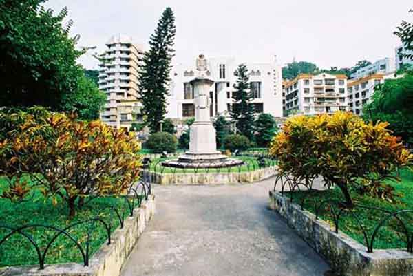 得勝花園建于十九世紀(jì)末葉,位于士多紐拜斯大馬路與得勝馬路之間,坐落于昔日“花士古打監(jiān)麻新路”的地段上。1898年,當(dāng)局為紀(jì)念伽馬率領(lǐng)的艦隊(duì)抵達(dá)印度四百周年,遂修筑了這條林蔭大道。大道全長(zhǎng)500米,闊65米,兩旁遍植假菩提榕,樹影婆娑,充滿田園色彩。至今部分古樹仍屹立該處,見證百年滄桑。時(shí)移世易,今天林蔭大道已不復(fù)存在,在原址先后建成了學(xué)校、酒店和治安警察廳等建筑物。而這兩座花園便是這條“公共人行道”現(xiàn)存的建筑。