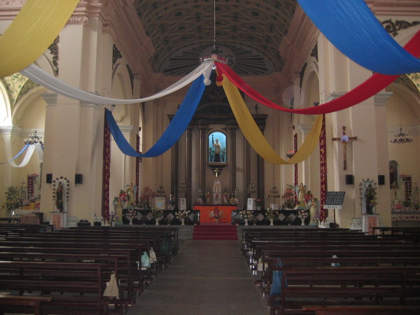 建于一九三八年,其設(shè)計(jì)主要采取澳門(mén)主要教堂的巴羅克式風(fēng)格。圣堂外墻以奶白色為主,還有橢圓形的窗戶及鐘樓。