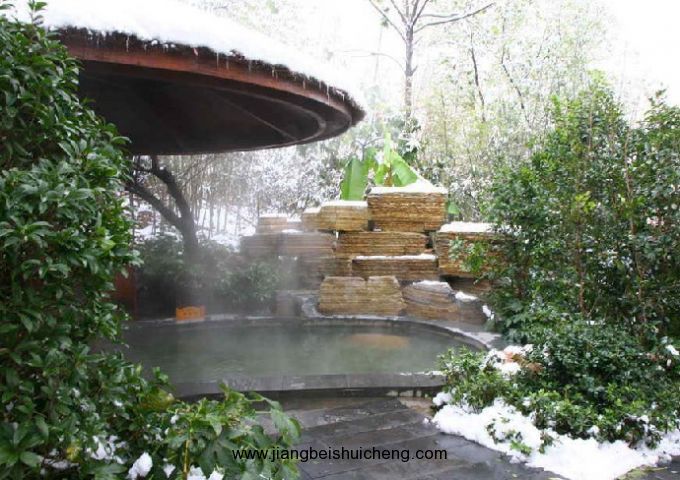 御水溫泉共有戶外動感泡池區13個,這些泡池精雕細琢,或泉水依山而下,或從池底噴薄而出,給泡池帶來勃勃生機,同時盡顯美妙動感。