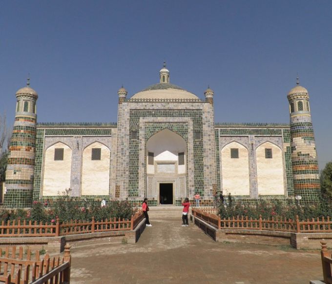 它坐落在喀什市東郊5千米的浩罕村,系自治區的重點文物保護單位。這是一座典型的伊斯蘭古建筑群,也是伊斯蘭教圣裔的陵墓,占地2公頃。 據說墓內葬有同一家族的五代72人(實際只見大小58個墓穴)。第一代是伊斯蘭著名傳教士玉素甫霍加。他死后,其長子阿帕克霍加繼承了父親的傳教事業,成了明末清初喀什伊斯蘭教“依禪派”著名大師,并一度奪得了葉爾羌王朝的政權。他死于1693年,亦葬于此,由于其名望超過了他的父親,所以后來人們便把這座陵墓稱為“阿帕克霍加墓”。 版權所有山東聊城聊之旅國際旅行社有限公司,轉載必究! 傳說,埋葬在這里的霍加后裔中,有一個叫伊帕爾汗的女子,是乾隆皇帝的愛妃,由于她身上有一股常有的沙棗花香,人們便稱她為“香妃”。香妃死后由其嫂蘇德香將其尸體護送回喀什,并葬于阿帕霍加墓內,因而人們又將這座陵墓稱做香妃墓”。不過據考證,香妃并沒有葬在這里,她確切的葬地是在河北遵化清東陵的裕妃園寢。
