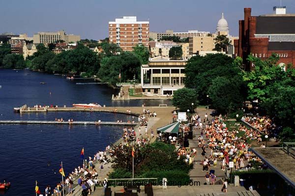 至于威斯康辛麥迪遜校區(qū)的校園環(huán)境,更是一等一的好。在鄰近威斯康辛州首都的市中心,有一個相當有名的曼多塔湖(Lake Mendota),而靠著這個湖畔一千英畝的地方,就是美國最杰出的大學校園─威斯康辛大學麥迪遜校區(qū)。每年威大都會在曼多塔湖舉辦各項運動競賽,也有不少學生在湖畔進行社團活動或是小團體的聚會,但大多數(shù)都是大學部的學生。不過曼多塔湖的確是所有就讀威斯康辛大學麥迪遜校區(qū)的學生最美好的一個回憶,在入學時和畢業(yè)后,才能有心情好好的欣賞這片美景,也算是威大學生的幸福。