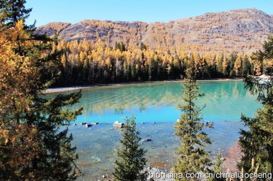 湖中湖水清清,這也是喀納斯地形的代表吧,不知道跳到里面洗個澡是不是很清爽呢?