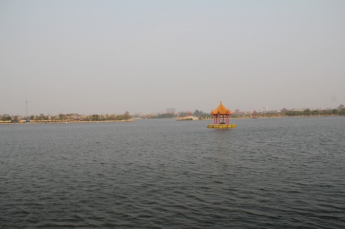 開封像聊城一樣依水而眠,見過東昌湖的秀,今天領教了開封水的美,不過我覺得開封的水更有詩意:“光搖瀲滟沿珠蚌,影落滄溟照水犀,火焰逼人高萬丈,倒提鐵筆向空題”
