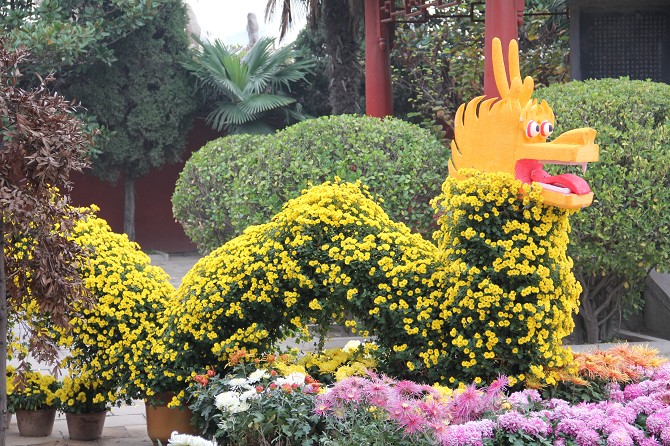 聽導游姐姐講,到秋季花開之際,漫步開封這座古城,無論你走到哪里,都可以看到鮮艷奪目的菊花,聞到沁人肺腑的花香。開封的菊花目前有數千種。開封種植菊花的記載可以追溯到1600多年前的南北朝。北宋時期,開封菊花就已經馳名全國。到了明清時代,開封養菊之風更盛,清朝乾隆皇帝來開封賞菊時親賦詩詞,留下“楓葉梧青落,霜花菊白堆”的美句,在開封禹王臺,至今還留有詠菊詩碑。一會兒要一睹風采……