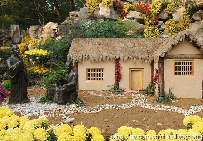 茅屋之下老友煮酒賞菊別是一番滋味。