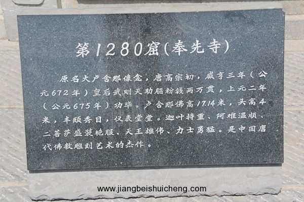 龍門石窟龍門石窟是中國石刻藝術(shù)寶庫之一,是國家AAAAA級景區(qū),位于洛陽南郊伊河兩岸的龍門山與香山上。