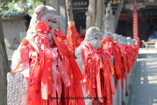 穿過儀門,你將看到一條我國關廟中惟一的石獅甬道。在長約35米的古甬道上,共有大小石獅104尊安坐兩側甬柱頂上,大獅姿態(tài)安詳,小獅活潑可愛,百獅百態(tài),讓人稱奇。