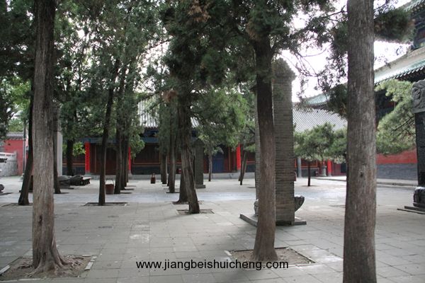 經甬道過碑林后便是天王殿,三間重檐歇山頂殿堂,外面有兩大金剛,內里則是四大天王像,威武雄壯。
