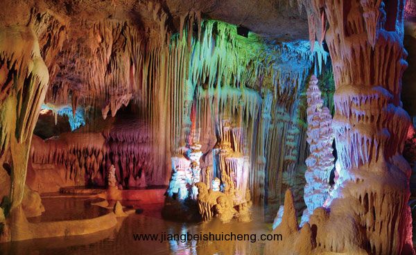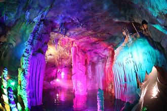 終于,到了。我們在導游的帶領下,邁著悠閑地步伐,欣賞著大自然的鬼斧神工和無窮造化。石花、石柱、石筍、石幔、石瀑本身就已是栩栩如生,再加上現代化七彩燈光的襯托,更是美得不可方物。溶洞內還有連接裂谷兩端的人工橋,橋兩側是散發著五彩斑斕色彩的石柱和石筍,同來的游客有個特搞笑的,扮起了阿凡達,抓住護欄左右翻滾,大家頓時笑聲一片。再往里走,裂谷深處,石瀑傾瀉而下,嘩嘩的流水聲在谷內激蕩開去,宛若華美的樂章。更神奇的是,水是暖暖的,有的地方竟還氤氳出大片霧氣,置身其中,那感覺真是妙不可言。都說“桂林山水甲天下”,但在我看來,此山,此水,此谷,也是世外桃源,終會聞名遐邇。