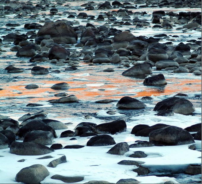 無論是黃昏還是黎明,冰河之水從未停止狂奔大海的熱情,正是這種熱情漸漸的感染了我,正是這種快樂悄然爬入我的心靈,讓我靜靜的趟過時間的河流,側耳傾聽流水的聲音。