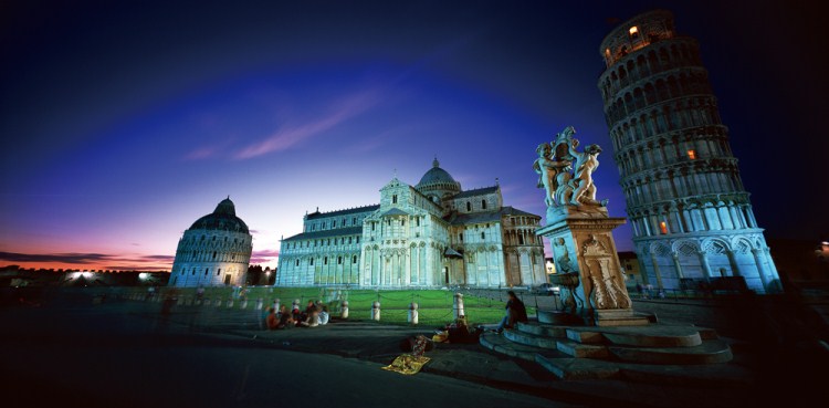 奇跡廣場又稱主教堂廣場,位于意大利托斯卡納大區(qū)比薩市中心,廣場上有四大建筑: 主教堂、比薩斜塔(鐘樓)、圣喬凡尼洗禮堂、洗禮堂墓園,廣場周圍還保留著古代的城墻和城門,中間有大片的草地。奇跡廣場上始建于1063年的這組建筑深刻影響了從11世紀到1284年的建筑發(fā)展和14世紀的藝術發(fā)展,堪稱中世紀基督教建筑的典范。教堂大廳中的銅制吊燈被稱為“伽利略吊燈”,當年19歲的伽利略在教堂內(nèi)觀察到吊燈的擺動,發(fā)現(xiàn)了小擺動的等時性定律,這是他動力學研究的序幕,在比薩斜塔頂?shù)?ldquo;兩個鐵球同時落地”的實驗則使他得出了自由落體定律。圣喬凡尼洗禮堂則是意大利最大的洗禮堂。至于奇跡廣場的得名,則是來自于意大利作家鄧南遮1910年出版的一部小說中的句子“Ardea旋轉(zhuǎn)了基督的天空,旋轉(zhuǎn)了奇跡的草地。”