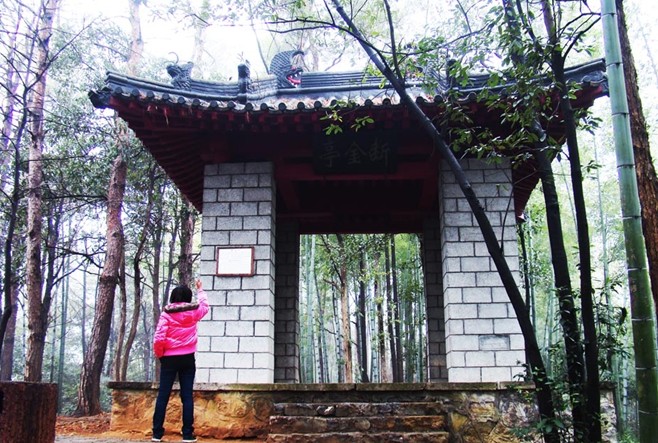 斷金亭 在梁山支脈狗頭山,西臨懸崖巨壑。是當年林沖為納晁蓋等七好漢入伙,火并白衣秀士王倫的地方。現已修復斷金亭,并在亭下修建 。
