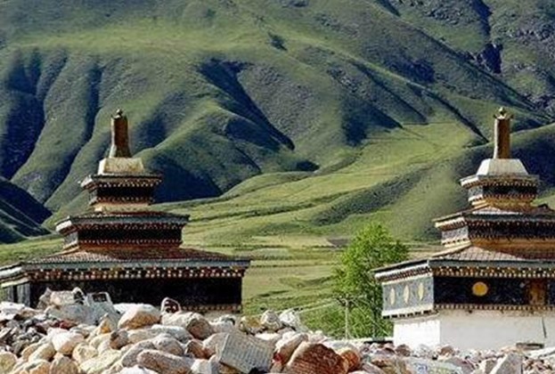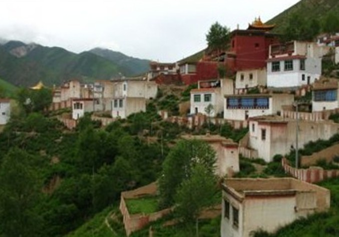 當(dāng)卡寺全稱為(Damkar Lhundrub Dechen Chokhor Ling),位于青海省玉樹州藏族自治區(qū)首府結(jié)古境內(nèi)東面約十公里處,倚山而建,勢如觀音靜息狀,下以八龍盤據(jù)之態(tài),莊嚴(yán)神圣。