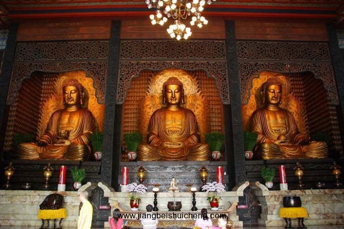 佛光山是臺灣最大的佛教道場,創辦人星云法師為提倡“人間佛教”之道,一磚一瓦建立起佛光山,成為臺灣信眾最多、最負盛名的佛教圣地。佛光山經過長期修葺,寺院建筑規模宏偉,大雄寶殿、大悲殿、大智殿及大愿殿是四幢主要建筑,疏落有致地坐落在園區內。大雄寶殿占地1800坪,是園中最大的殿宇,內供三尊大佛皆高二丈余,崇偉肅穆;大殿四面墻壁有14,800個小佛龕,在萬燈照耀下,使大雄寶殿更顯莊嚴神圣。
