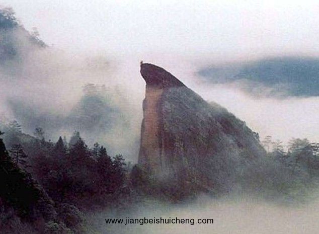 從天車架往西行約數百米,便可看見一座形似雄鷹的巨巖。“雄鷹獨立健無倫,銳喙昂頭實逼真。豈是神山厭凡鳥,欲君奮擊絕器塵”。形象、生動地描繪出了鷹嘴巖的雄姿。鷹嘴巖在章堂澗南側,如一頭向東昂首的雄鷹,嘴中含(生)著一株刺柏,形象奇妙,是武夷九十九巖中最好的一景。鷹嘴巖北有丹霞嶂,處在章堂澗邊,壁上有洞,相傳太平天國時,崇安城內一富豪懼怕農民起義軍對他清算,攜眷逃避來此,藏身洞中。后來他在洞中建造了樓閣,并裝上轆轤便于上下,人稱天車架。版權所有山東聊城聊之旅國際旅行社有限公司,轉載必究!今樓閣已荒廢,天車架也已不存,僅留遺跡供人觀看,成為一景。鷹嘴巖是一座渾然一體的巨巖,光禿禿的巖頂,東端向前突出,尖曲如喙。出奇的是,鉤形的“鷹嘴”上竟然生長首一株枝干虬屈的古老刺柏,給鷹嘴增添了幾分飄逸,幾許神采,從巖頂直削而下的巖壁,光潤瑩潔,白里透紅,而微微拱起的巖脊卻是一片蒼黑,隱隱約約地現出一條條裂紋,猶如豐滿的羽翼。佇立在章堂澗旁仰望鷹嘴巖,只見它兀立峰巔,翹首藍天,勢欲振翅高翔,搏擊蒼穹,無比雄偉壯觀。