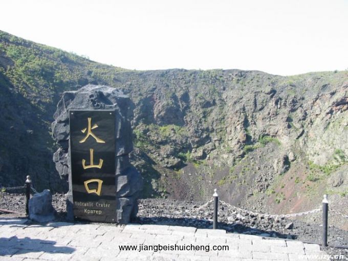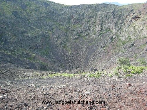 山的東、北兩側(cè)有盤山道可達(dá)山頂,山頂有漏斗狀火山口,直徑約350米,深約140米,內(nèi)壁陡峭,景象森然。火山口周圍有人行步道,俯視火山口底令人望而生畏。
