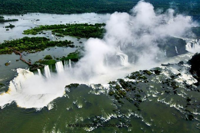 另外,游覽伊瓜蘇大瀑布,游客還可乘直升機盤旋于伊瓜蘇大瀑布上空,這樣才能真正看清伊瓜蘇大瀑布,它是一個巨大的弧形(幾乎半圓)瀑布,有4公里長,由無數個大大小小的瀑布組成,每秒鐘,有4萬5千加侖的水傾瀉而下,除了高度不及尼亞加拉,這是世界上最長的瀑布。
