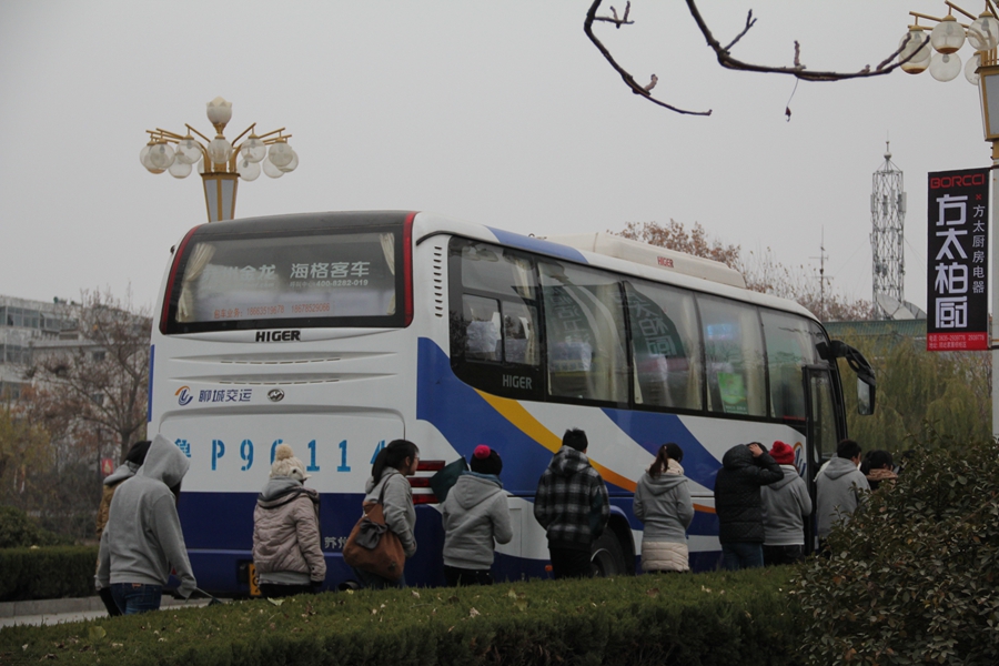 一天的行程到此結束,導游計調組的成員有序排隊上車。