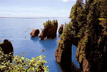 新不倫瑞克省的南部森林逐漸稀疏,向沿海地貌過渡,該省最主要河流圣約翰河在芬迪灣注入大西洋。芬迪灣(Fundy Coast)以不同尋常的潮汐聞名于世,它位于新不倫瑞克省與新斯科舍省之間,與大陸海岸線成平行方向,縱深290公里。芬迪灣的海潮是世界上最高的,平均高度為 10 米,最高可達(dá) 17 米,強(qiáng)勁的浪濤,不僅每十二小時(shí)帶來1000億噸海水(這比全球所有淡水河流中每天流動(dòng)的水量還要多),更以數(shù)世紀(jì)的旱雕砌成舉世聞名的“花盆巖”景觀。