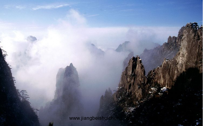 仙女繡花在安徽省黃山的白云景區,位于排云亭前,向左眺望,遠處石床峰上有一巧石似少女,面前有一奇松,如繡花臺繃,美其名“仙女繡花”。