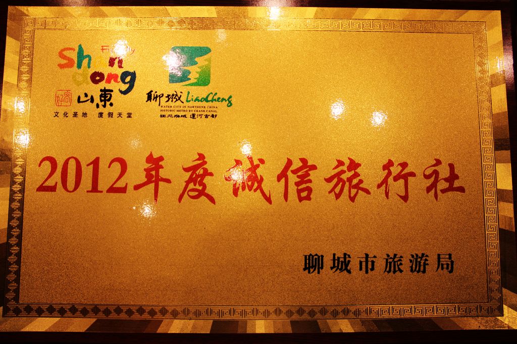 熱烈祝賀聊之旅旅行社榮獲2012年度聊城市“誠信旅行社”榮譽稱號
