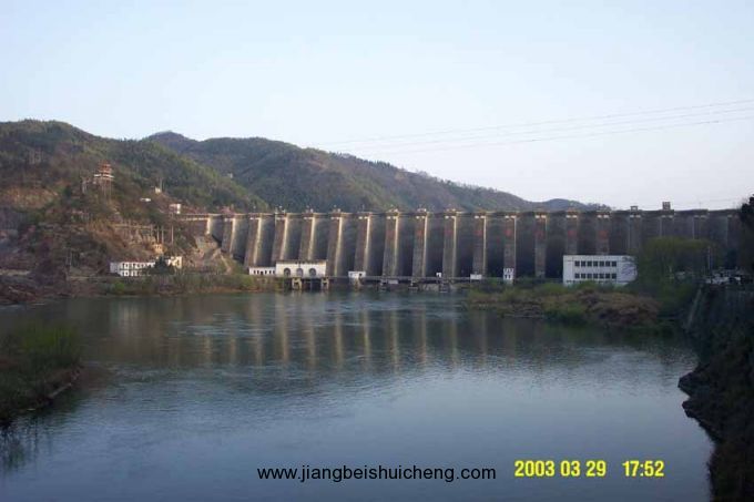 樞紐工程由攔河壩、溢洪道、輸水鋼管和發(fā)電廠四個部分組成。攔河列為鋼筋混凝土連拱壩,東岸端為重力壩,西岸端為平板壩,全長半5洼拱壩段長 413. 5米,有20個垛和21個拱組成。1983年大壩加高1.5米,并加做防浪墻高1.1米后,壩頂高程由原來128.46米增至129.96米;防浪墻頂高程由原來129.56米增至131.06米;最大壩高由原來74.4米,增至75.9米。溢洪道位于東岸山凹,開敞式,1984年由原來5孔擴建為6孔,堰頂凈寬63.6米,孔寬10.6米,最大泄量7540立方米/秒。版權(quán)所有,山東聊城聊之旅國際旅行有限公司轉(zhuǎn)載必究!泄洪鋼管3道,管徑l.975米,分別布設(shè)在13,14,15號垛內(nèi),最大泄量225立方米/秒。發(fā)電引水鋼管6道,供新老兩座電。廠輸水發(fā)電,合計發(fā)電流量98.25立方米/秒。