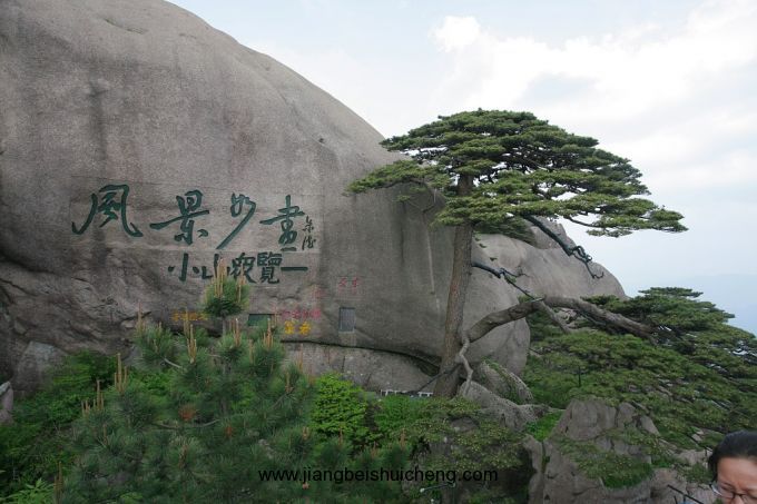 被譽為“天下第一奇山”的黃山,以奇松、怪石、云海、溫泉“四絕”聞名于世,而人們對黃山奇松,更是情有獨鐘。山頂上,陡崖邊,處處都有它們瀟灑、挺秀的身影。黃山最妙的觀松處,當然是曾被徐霞客稱為“黃山絕勝處”的玉屏樓了。樓前懸崖上有“迎客”、“陪客”、“送客”三大名松。迎客松姿態優美,枝干遒勁,雖然飽經風霜,卻仍然郁郁蒼蒼,充滿生機。