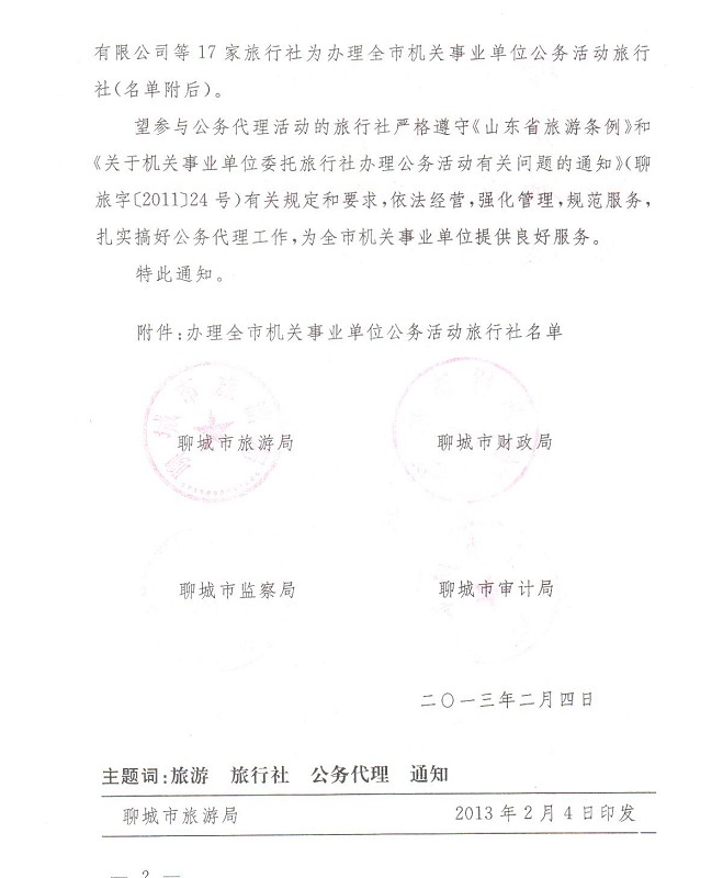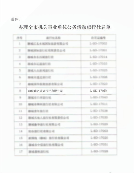 【網(wǎng)宣部】熱烈祝賀聊城聊之旅旅行社有限公司成為聊城市機(jī)關(guān)事業(yè)單位公務(wù)活動旅行社!