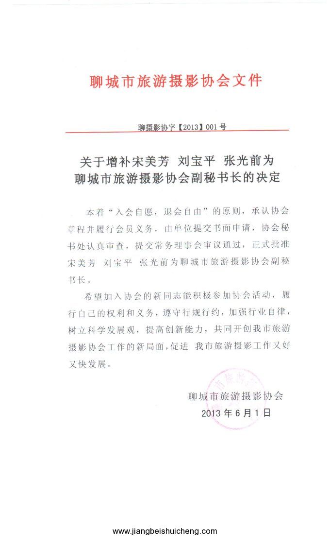 劉寶平擔(dān)任聊城市旅游攝影協(xié)會副秘書長